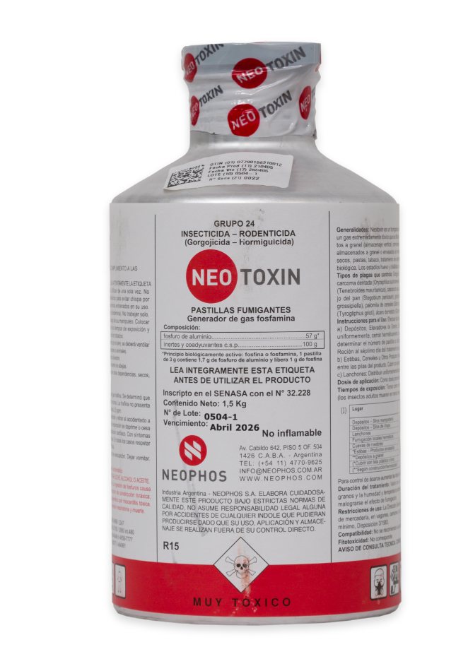 NEOTOXIN C15: Lata de aluminio de 1,5 kg, con 2500 comprimidos de 0.5 gramos de ALP 57%